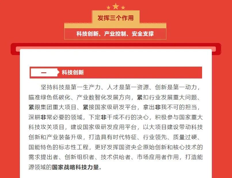 此前,國家能源集團發展戰略為“一個目標、三型五化、七個一流”。一個目標是指建設具有全球競爭力的世界一流能源集團;三型五化是指打造創新型、引領型、價值型企業,推進清潔化、一體化、精細化、智慧化、國際化發展;七個一流是指實現安全一流、質量一流、效益一流、技術一流、人才一流、品牌一流和黨建一流。