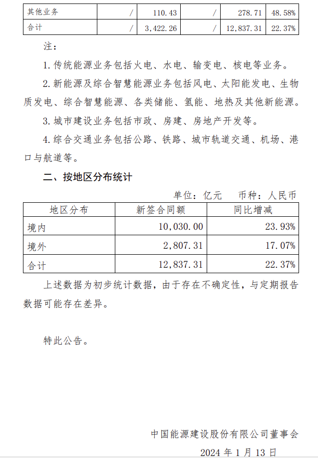 新簽合同額12837.31億!中國能建發布2023年度主要經營數據情況