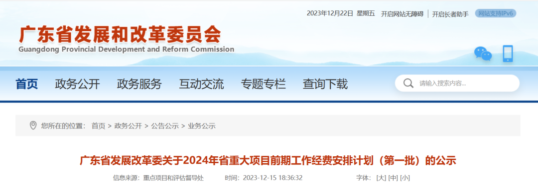 廣東省2024年省重大項目前期工作經費安排計劃(第一批)公示