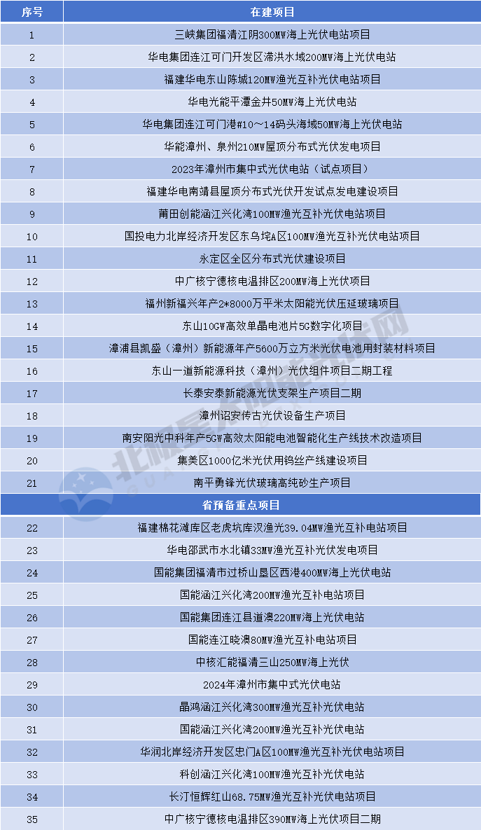 2月5日,福建省發(fā)展和改革委員會印發(fā)2024年度省重點項目名單的通知,福建省重點項目1593個,其中包含35個、3.71GW光伏項目,海上光伏1.64GW。此外,光伏制造業(yè)項目9個。