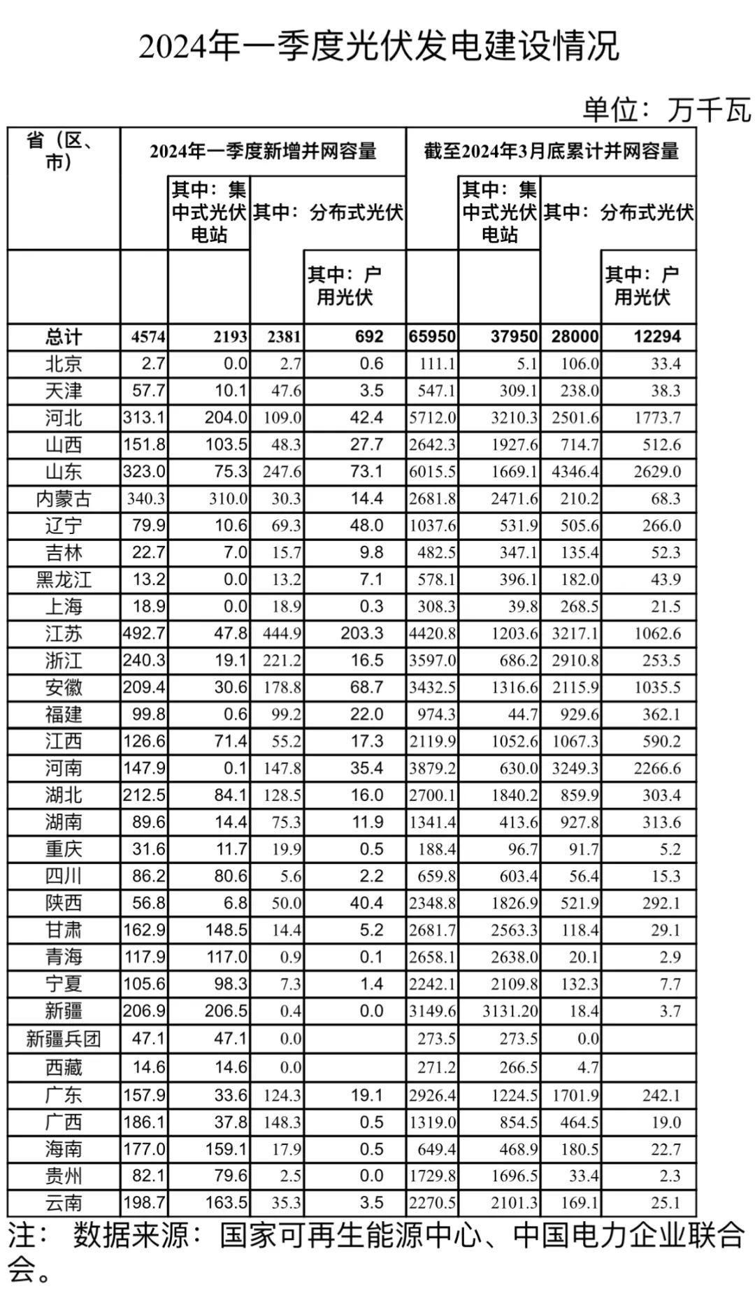 5月6日,國家能源局公布2024年一季度光伏發(fā)電建設(shè)情況。