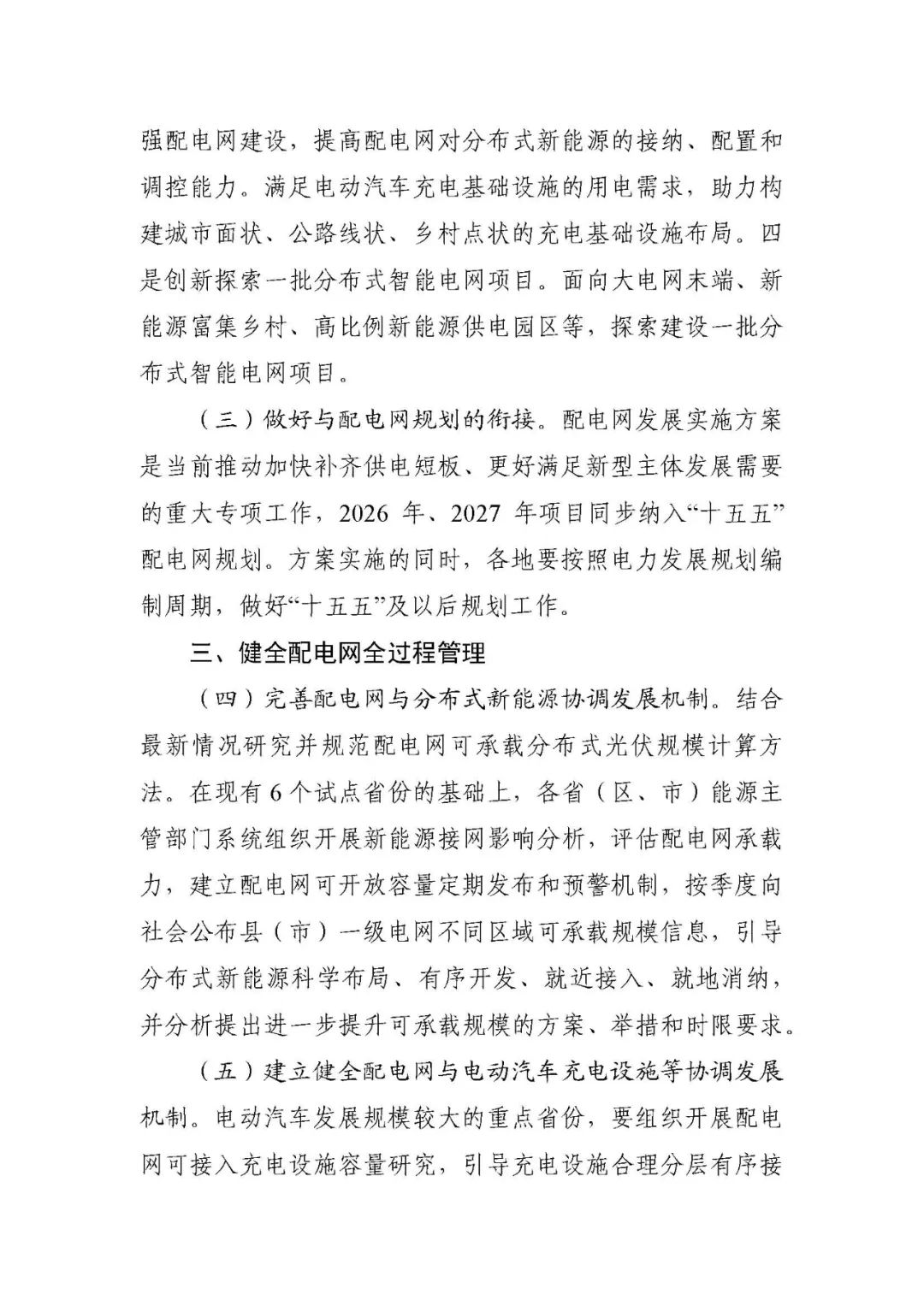 完善配電網與分布式新能源協調發展機制。結合最新情況研究并規范配電網可承載分布式光伏規模計算方法。在現有個試點省份的基礎上,各省(區、市)能源主管部門系統組織開展新能源接網影響分析,評估配電網承載力,建立配電網可開放容量定期發布和預警機制,按季度向社會公布縣(市)一級電網不同區域可承載規模信息,引導分布式新能源科學布局、有序開發、就近接入、就地消納,并分析提出進一步提升可承載規模的方案、舉措和時限要求。