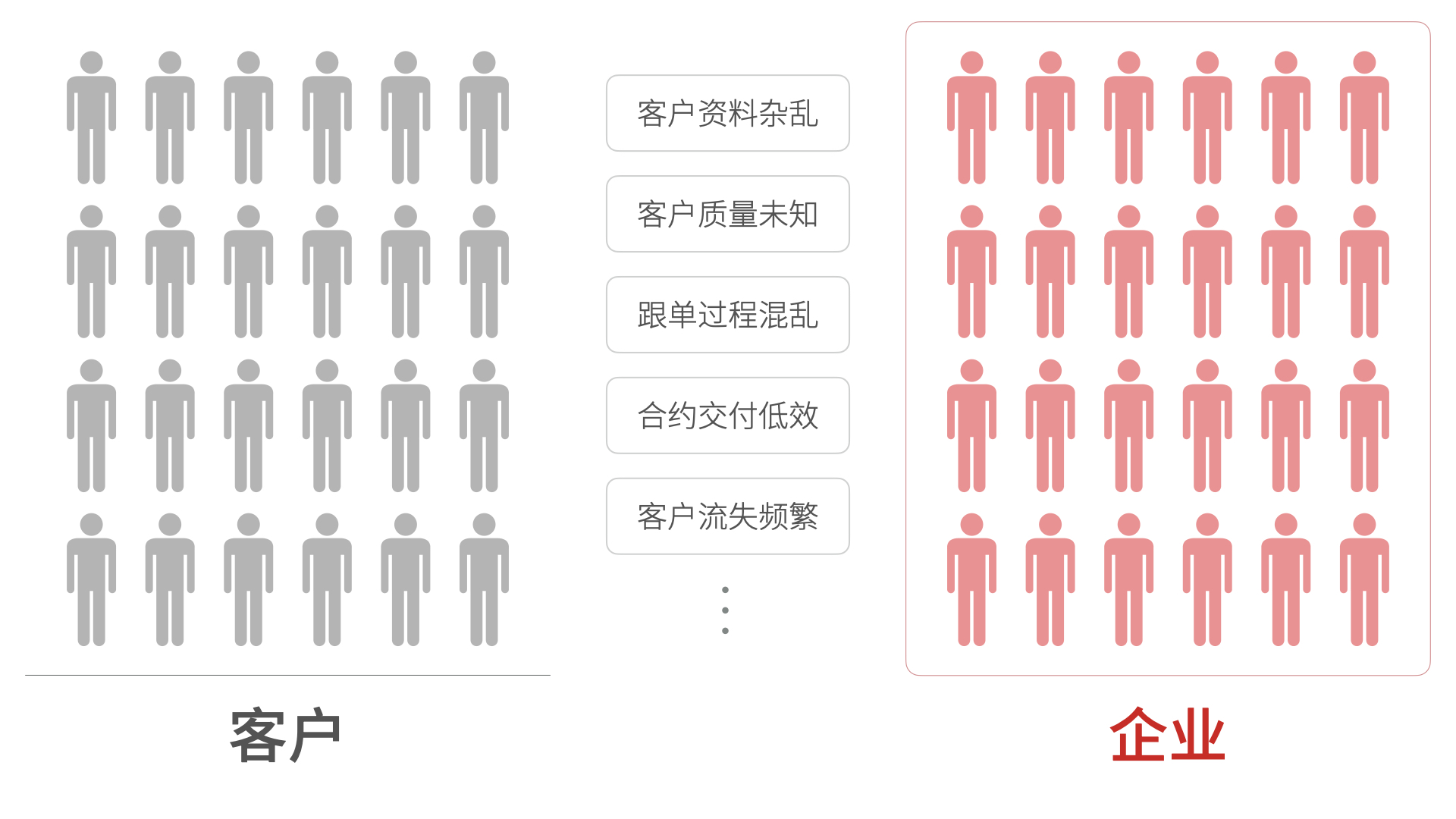 但是對于絕大多數企業而言,他們面對的是數以萬記的企業或個人客戶,如果沒有系統的輔助,往往會導致客戶資料雜亂、客戶質量未知、跟單過程混亂、合約交付低效、客戶流失頻繁等企業經營困境,自然無法實現收入預期的最大化。而且企業內部還有分屬不同部門的千百名員工,一個客戶從線索到回款的全生命流程往往需要各部門數名員工的協同工作,如果沒有系統化的流程管理和數字化的決策輔助,也無法提高收入預期的置信度。